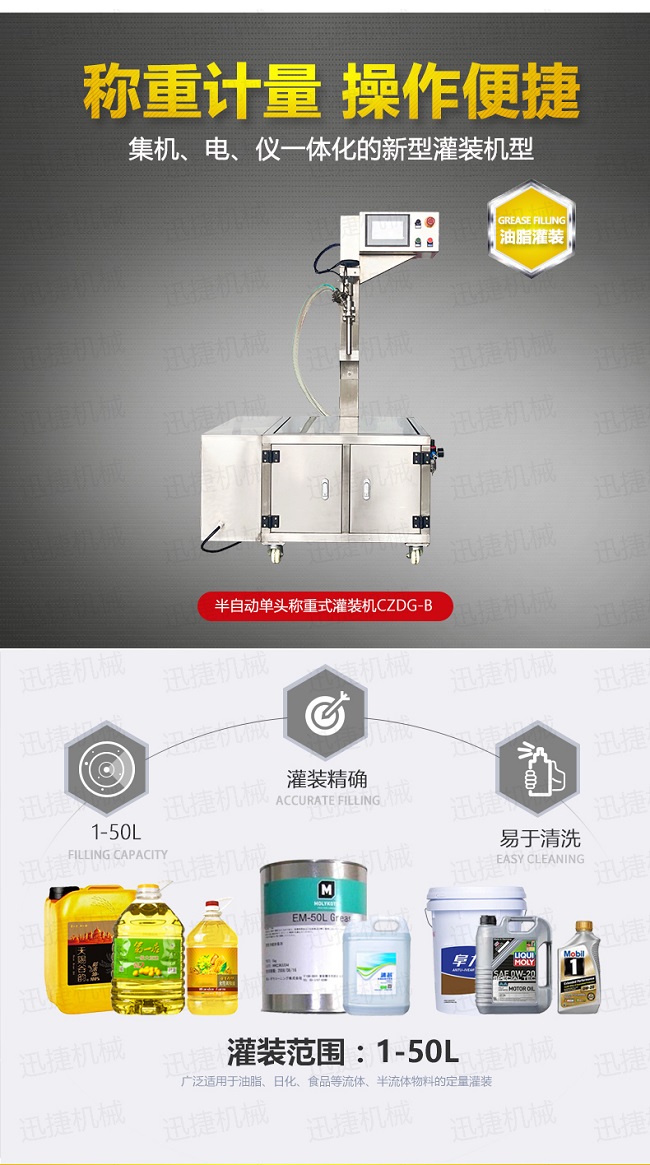 1.罐装范围广,本机可罐装1-50L。可满足多种规格得罐装。