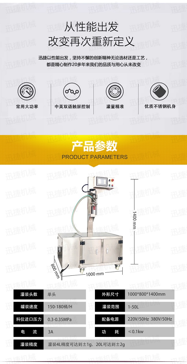 2.本设备罐装精度精准,罐装4L精度可达到±1g、20L可达到±2g。