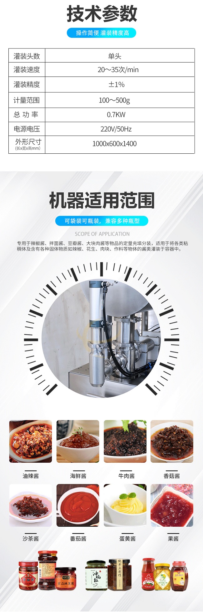 半自动定量辣椒酱灌装机