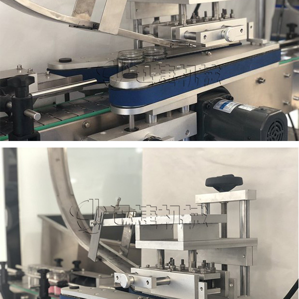 玻璃瓶封口机设备集自动进瓶、自动理盖上盖、自动抽真空封口、自动出瓶于一体,生产效率高,运行稳定可靠,是食品酱料、饮料、保健品等行业封口理想的旋盖设备。气囊式密闭抽真空旋盖头,适用范围更广,自动玻璃瓶封口机在一定范围内可适用于多种瓶型,调整更加方便。密闭空间小,相对于传统抽真空模式,自动玻璃瓶封口机生产速度提高20%。这样解决了客户担心的封口速度的问题。