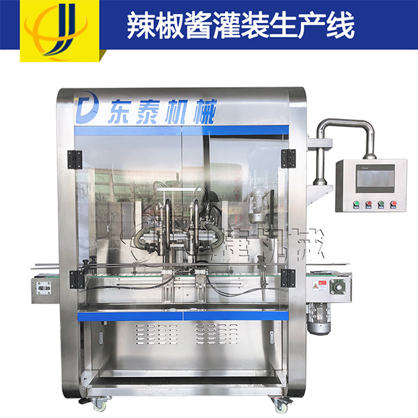 全自动辣椒酱灌装机专用于粘稠酱体、辣椒酱、拌面酱、大块肉酱等物品的定量充填分装,适合于将各类粘稠体及含有各种固体物质如辣椒、花生、肉块、佐料等物体的酱类灌装于各种容器中,适用于牡蛎酱、辣椒酱、拌面酱等酱类、辣酱、香辣酱、甜辣酱、花生酱、豆瓣酱、豆鼓等酱类灌装。