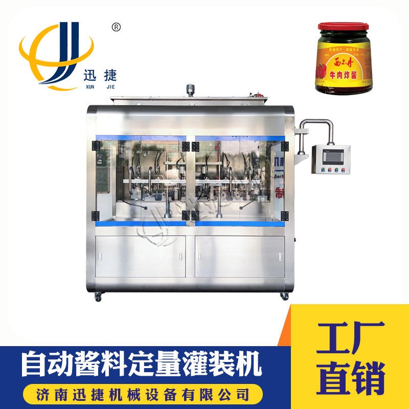辣椒酱灌装机可以说再这些年中经过我们迅捷专业人员的努力已经是在源源不断的更新,只为了能给企业带来更加便利的自动化辣椒酱灌装机能够使企业生产利润能够较大化,我们迅捷公司一直都是再不断的随着市场而进行改变,这样才能够满足企业的需求,从市场的表现来看的话我们迅捷的辣椒酱灌装机在实际加工生产中证明了自己在生产效率,工作状态随时任意变换,操作便捷,而且整机全不锈钢制作,特别适用GMP认证,食品卫生认证,在商品经济快速发展的今天,自动化辣椒酱灌装机毫无疑问的成为了酱料灌装企业非常理想的灌装设备选择了,欢迎拨打我们的热线电话!
