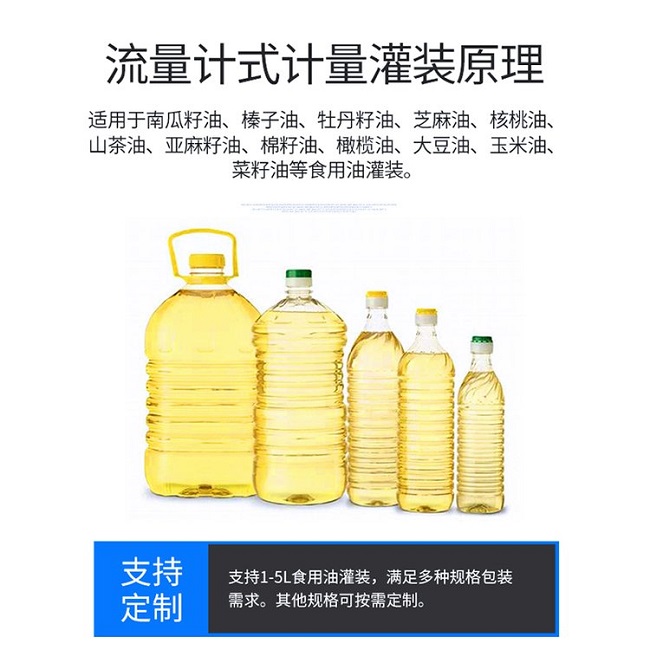 为了满足交货期的要求和降低工艺流通成本的需要,食用油灌装机是通过引进创新研发新型设备在安全生产上更是成为了炙手可热的设备,未来的食品行业、 饮料行业、且化行业等都会相继的出现食用油灌装机的身影在于具有误差一键校正功能,计量有误差,输入实际出油量电脑自动校正正确输油量,且主体核心均采用德国西门子、施耐德等国际、国内有名气的配件,且均为国标件这样的一款食用油灌装机,您还有什么理由拒绝而不选择我们迅捷机械呢?