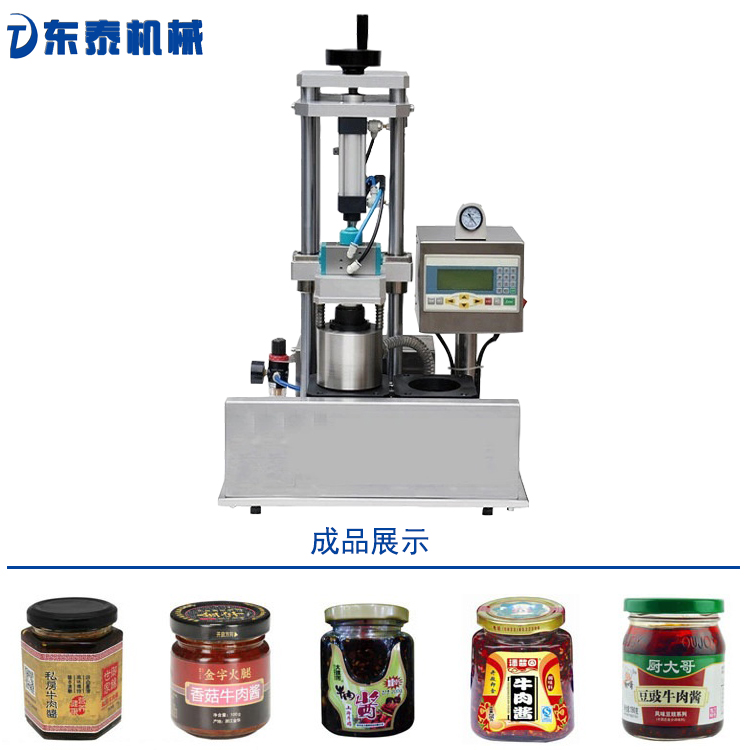 小型真空旋盖机,也可以称之为半自动真空封口机,辣椒酱、罐头真空旋盖机。