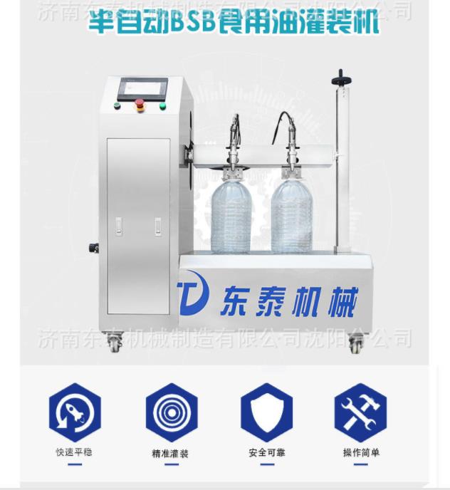 这款机器适用于花生油、大豆油、菜籽油、色拉油、芝麻油、石油化工润滑油等各种油类和粘稠液体的定量灌装。灌装精度高,是一款专业设计、结构精密的油类灌装机。BSB半自动食用油灌装机的主要功能就是灌装,其他附带功能比较少。BSB食用油灌装机技术、性价比高,而且这款机器不像全自动食用油灌装机那样占地面积大和高成本。BSB半自动油类灌装机体积小,占地面积小,而且成本比全自动油类灌装机低很多,可以配合油脂灌装生产线一起使用,也可以单使用,灵活方便、易操作。大家可以根据自己的实际情况选择适合自己的产品。