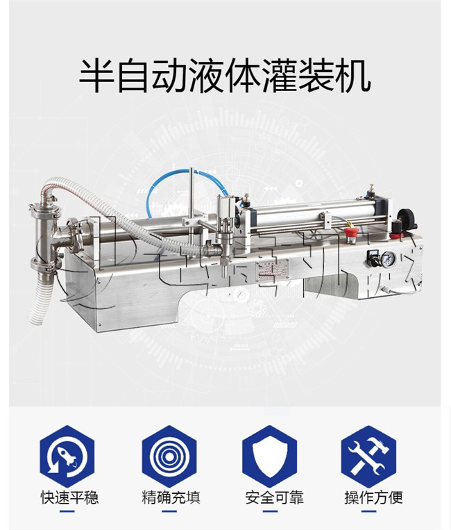 半自动液体灌装机有单头、双头液体灌装机两种,它适用于日化行业、医药行业、食品行业、油墨行业和涂料行业的液体灌装,此小型液体灌装机设计合理,机型小巧,操作方便,是外各个中小型企业灌装的帮手。。