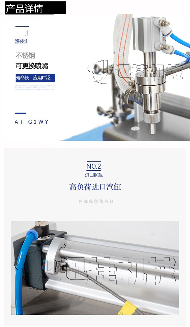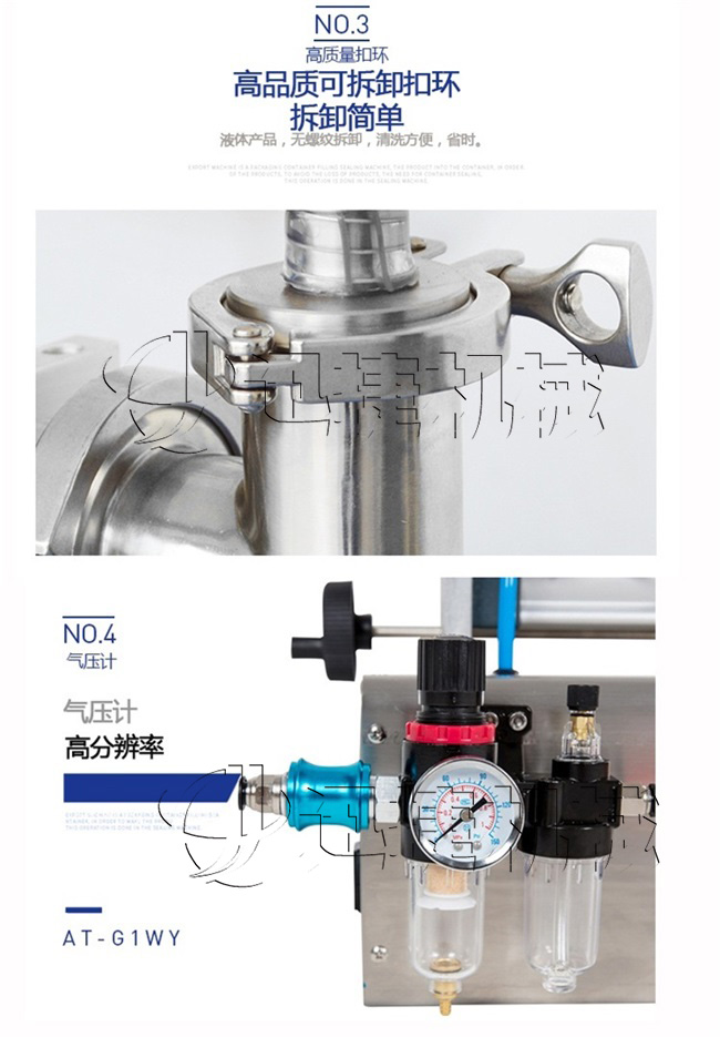 1.小型液体灌装机气动部分均采用德国FESTO和日本SMC的气动元件;